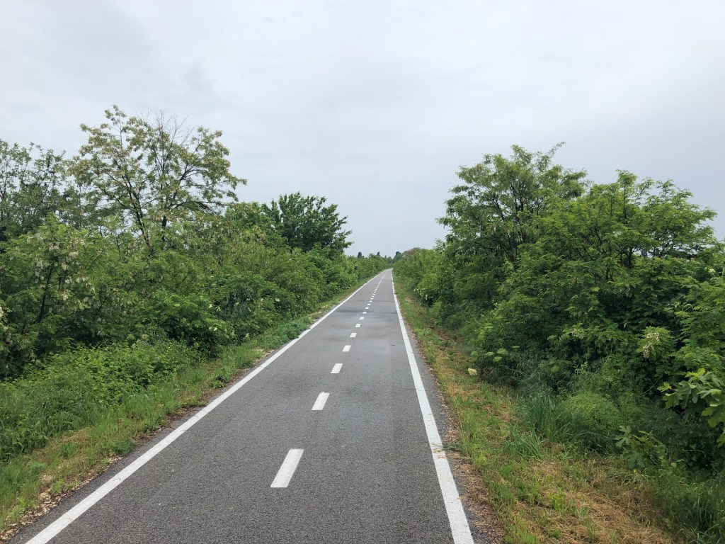 Als es aber wieder abwärts geht, ziehe ich es vor auf der Strasse zu fahren, da man auf dem gekiesten Fahrradweg keine Schussfahrt machen kann.