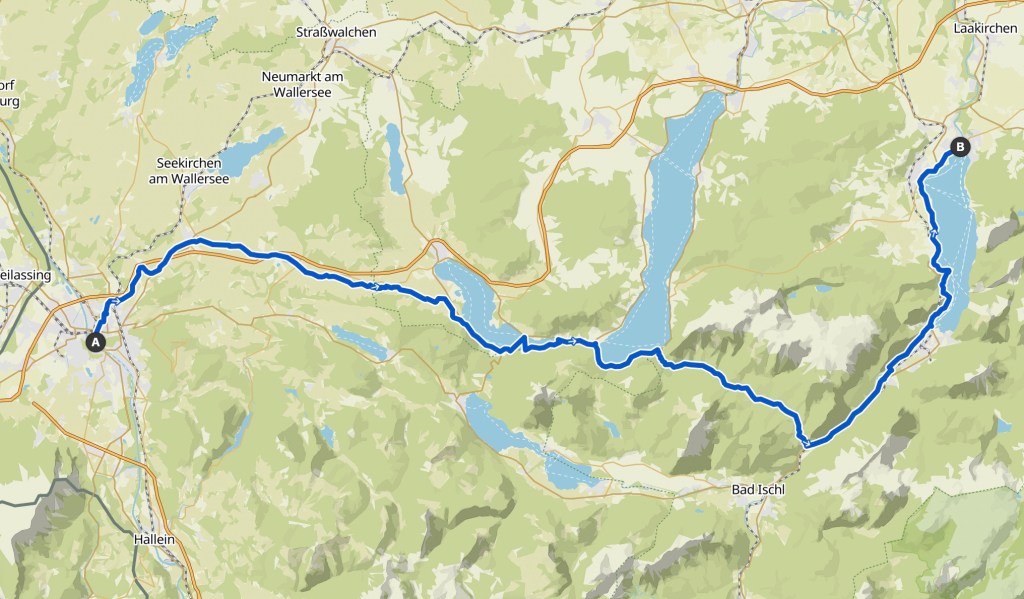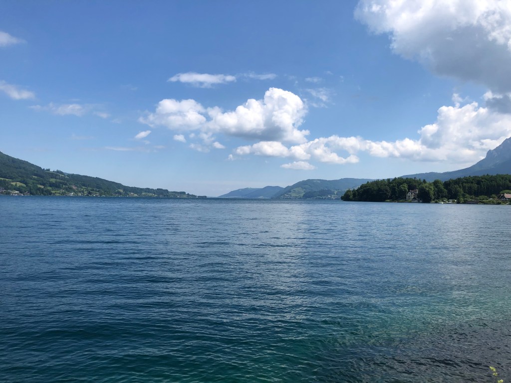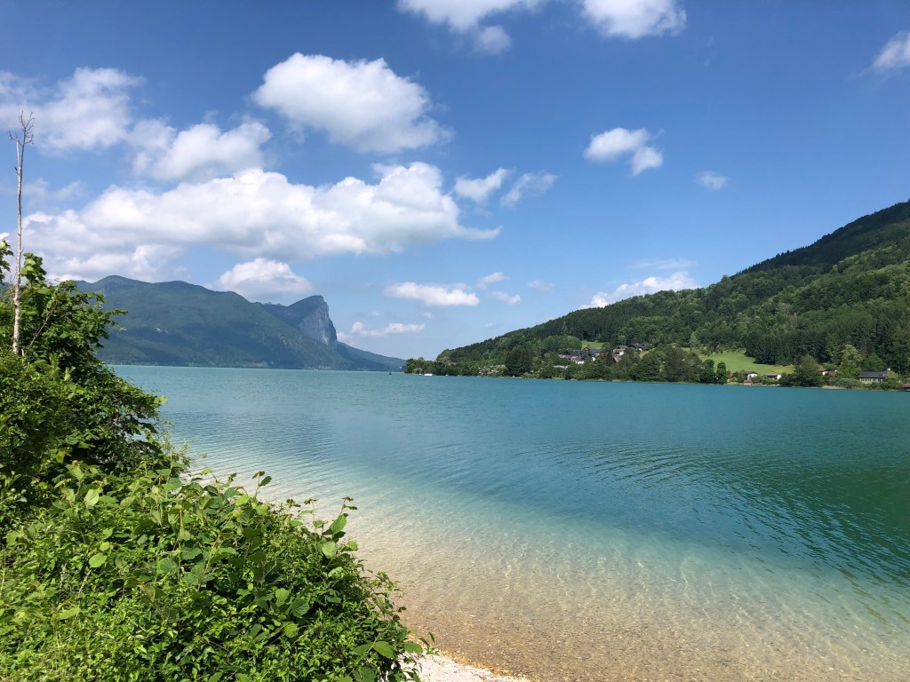 Schon bald erreiche ich den türkis schimmernden Mondsee, an dem ich entlangfahre und an dem ich eine Kaffeepause gemacht hätte, wenn ich ein Café entdeckt hätte.