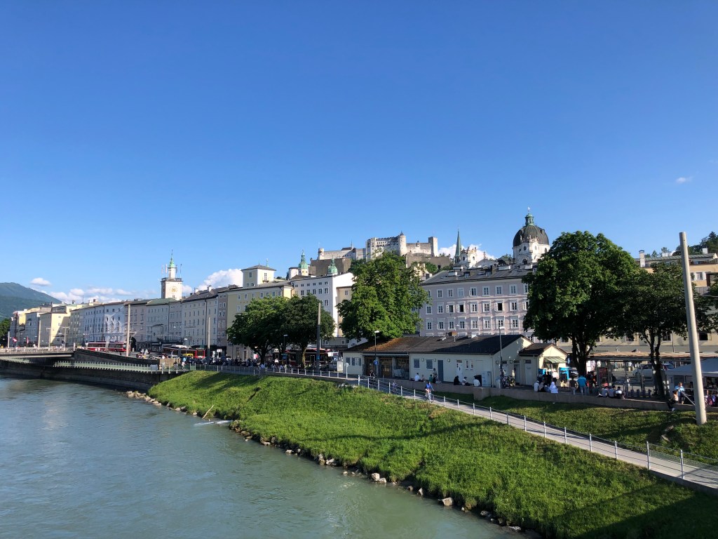 Immer wieder schön ist der Anblick auf die Altstadt mit der darüber thronenden Festung und dem Fluss Salzach