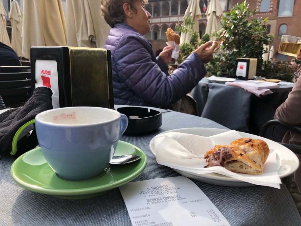 Beim heutigen Frühstück höre ich wieder schweizerdeutsch. Und als ich bemerke, dass meine Tischnachbarn einen Ostschweizer Dialekt sprechen, werde ich hellhörig. Der Dialekt klingt so vertraut, dass ich denke, dass das ältere Paar aus dem Raum Schaffhausen kommt. Das Wort «Tünnä» (= dünner Kuchen) outet die beiden definitiv als aus dieser Region. Ich spreche sie an und wir kommen miteinander ins Gespräch. Sie kommen aus Schlattingen und kennen eine ehemalige Schulkollegin von mir – die Welt ist klein. Sie fahren heute nach Mantua und ich mache mich auf den Weg nach Padua.