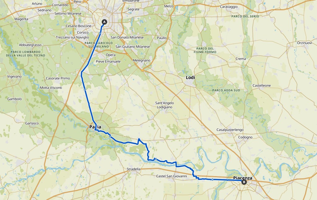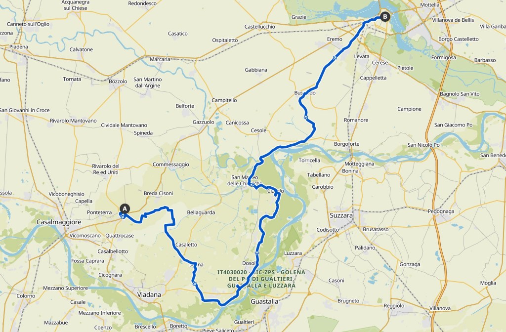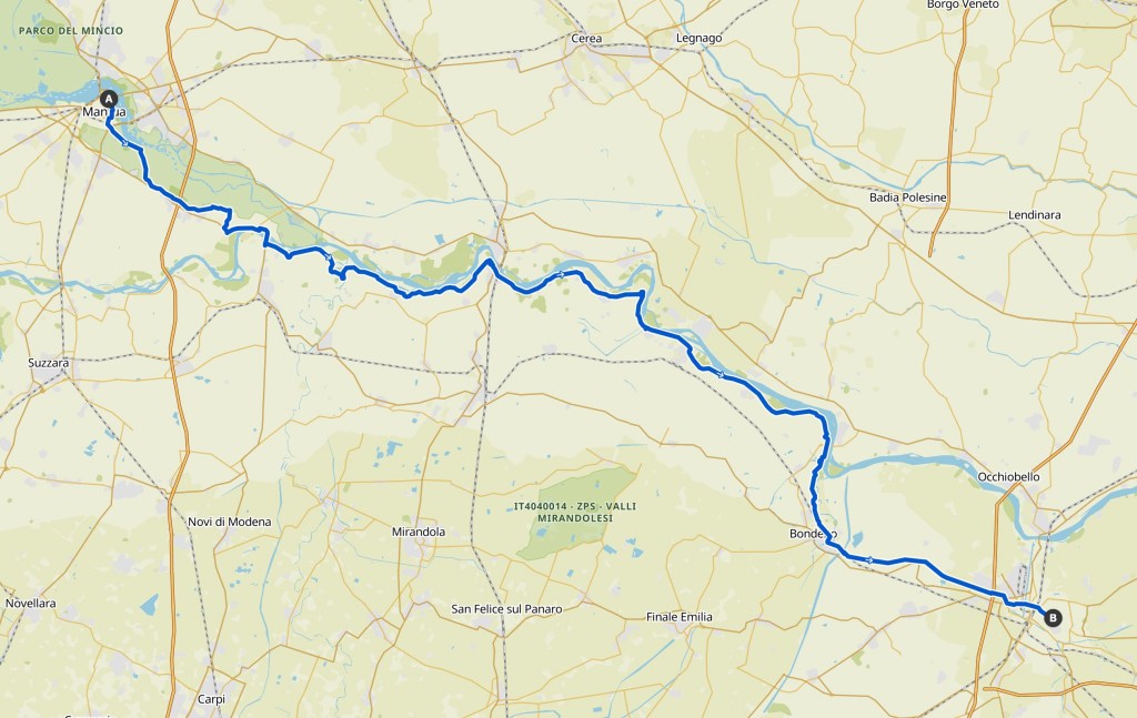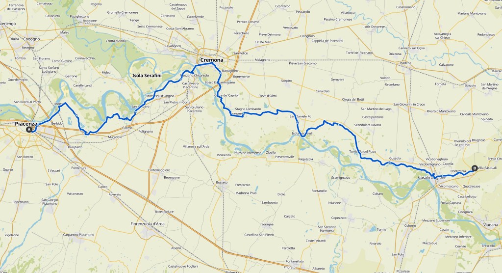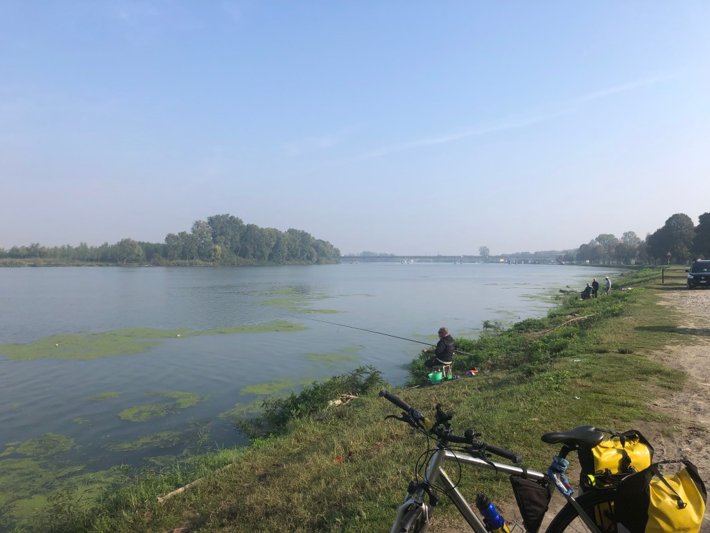 Als ich wieder den Po erreiche und auf dem Deichweg fahre, überholen mich viele Velofahrer, machmal allein oder sogar in grossen Gruppen mit bis 30 Männern.