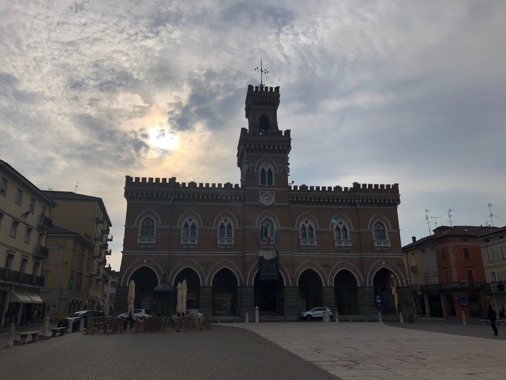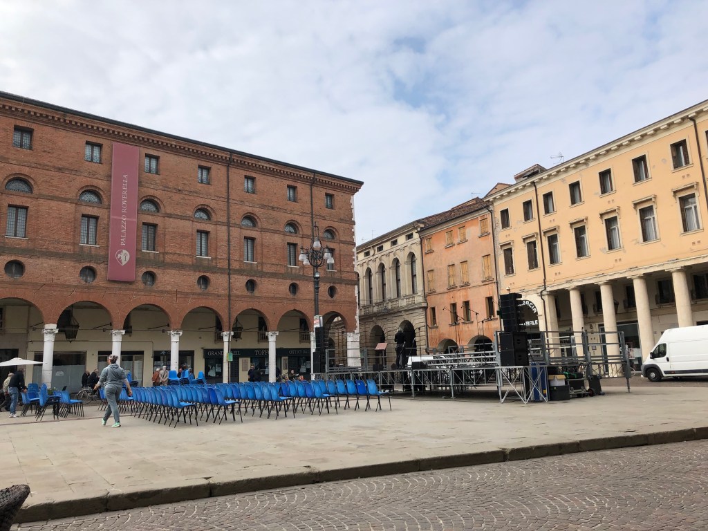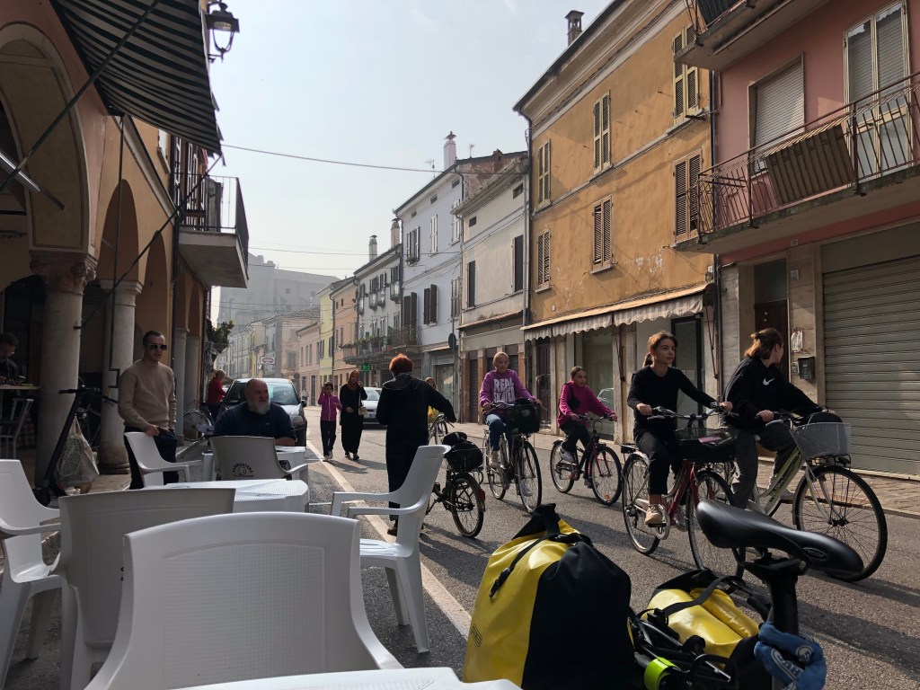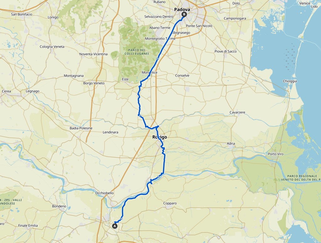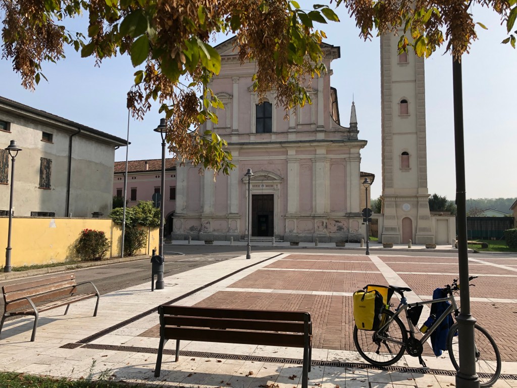 Ich verlasse in der Folge die Po-Fahrradroute und erreiche nach etwa 40 km Rovigo, die erste grössere Stadt auf der heutigen Etappe. Auf der Piazza im Zentrum mache ich meinen ersten Halt und trinke eine Coca Cola.