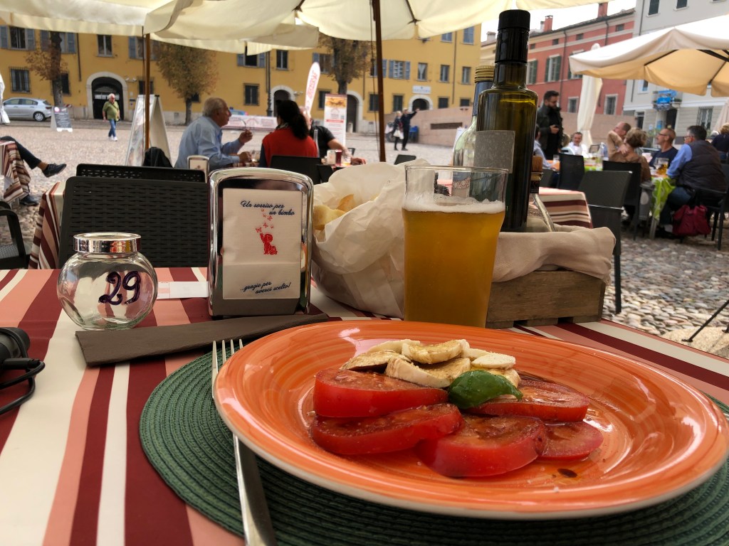 In der kleinen Stadt Monselice werde ich aber fast schwach, als ich freie Plätze in einem Gartenrestaurant entdecke…