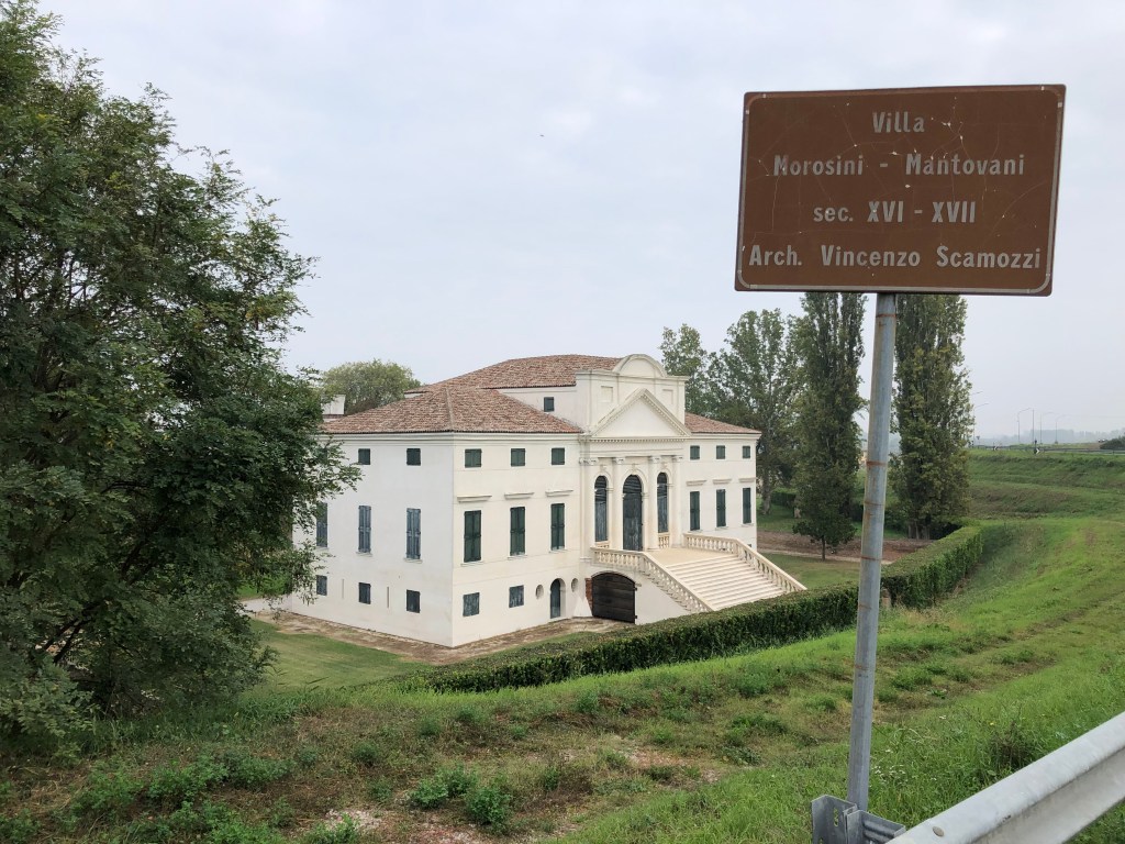 Als ich auf die linke Seite des Pos gewechselt bin, fällt mir zur linken ein stattliches Haus auf, es ist die Villa Norosini-Mantovani, wie ich dem Schild entnehmen kann.