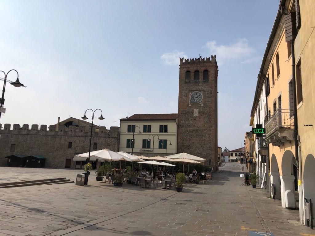 Auf der Piazza dei Signori setze ich mich an den Tisch einer Bar mit Blick auf den berühmten Uhrtum, den Torre dell’ Orologio, mit einer astronomischen Uhr von 1437.