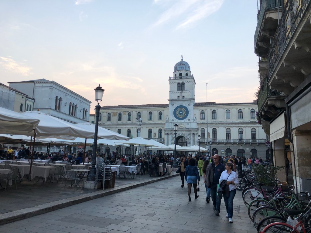 Die riesige Basilica fällt mir als erstes auf und der riesige Platz davor (einer der grössten Innenstadtplätze Europas). Als ich schon fast bei meinem Hotel bin, entdecke ich einen freien Tisch in einem Restaurant mit toller Aussicht auf die Basilica di Sant’ Antonio, die Unesco-Weltkulturerbe ist.