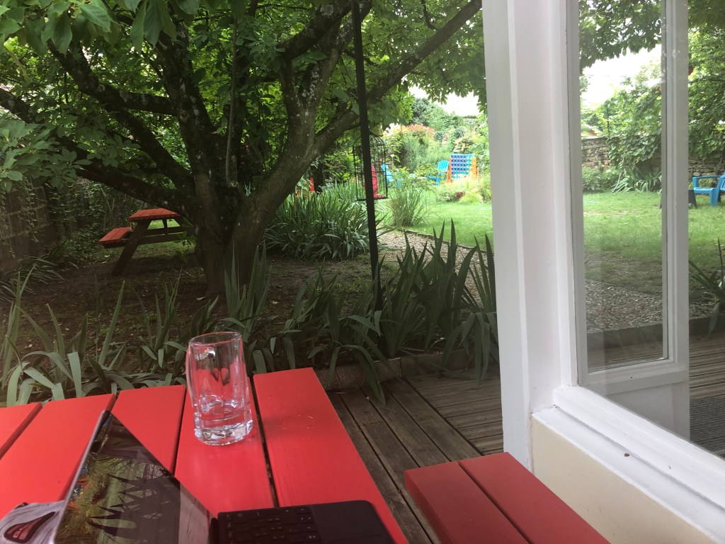 Natürlich esse ich auch hier wieder einen frisch vom Baum gepflückten, biologischen Apfel und erinnere mich dabei an das Lied von der jungen Frau von Ryde, die zuviele Äpfel ass und daran starb: