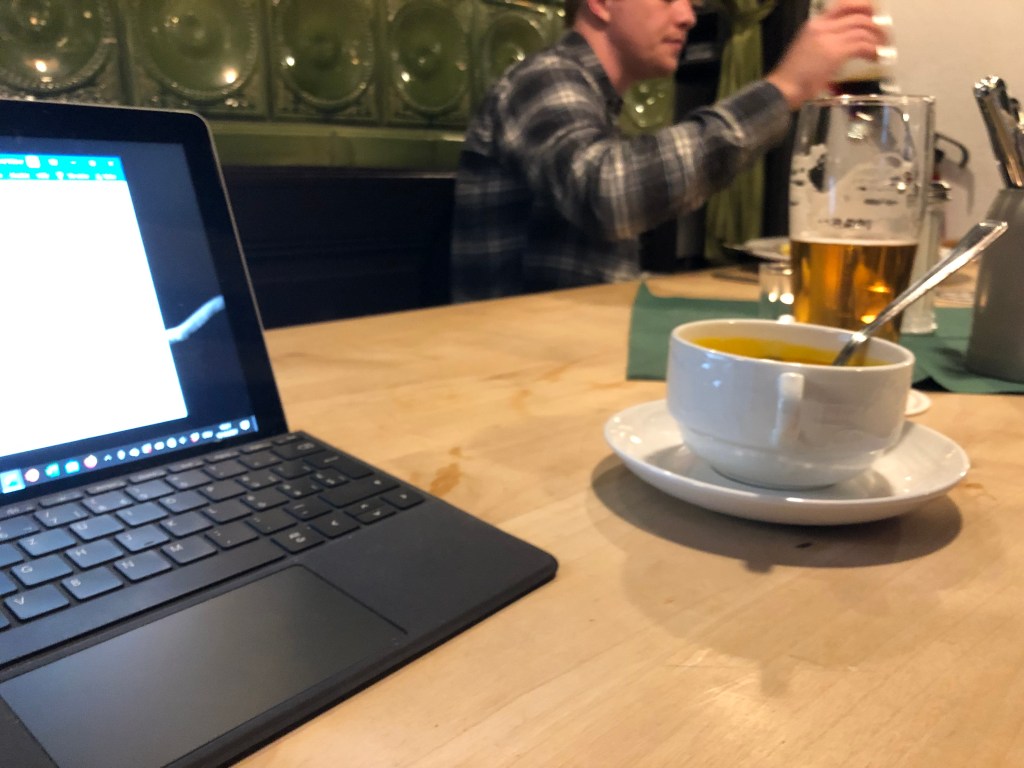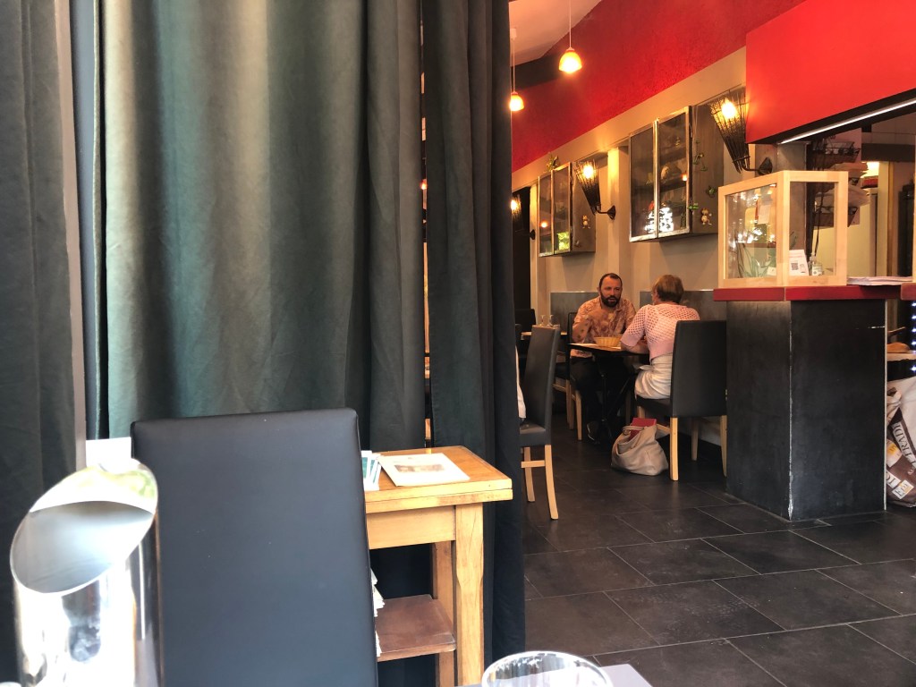 Bei Löhr mache ich meinen obligaten Kaffeehalt. Zur heissen Schokolade esse ich diesmal ein „mürbes Hörnchen“. Dieser Name belustigt mich, in der Schweiz ist das einfach ein „Gipfeli“.