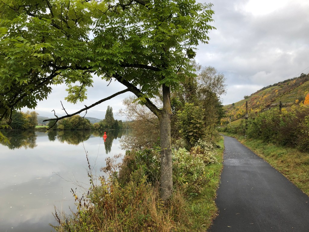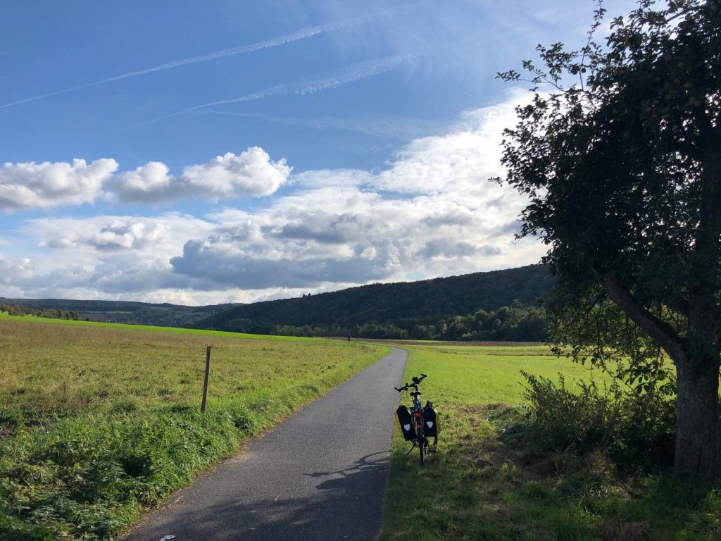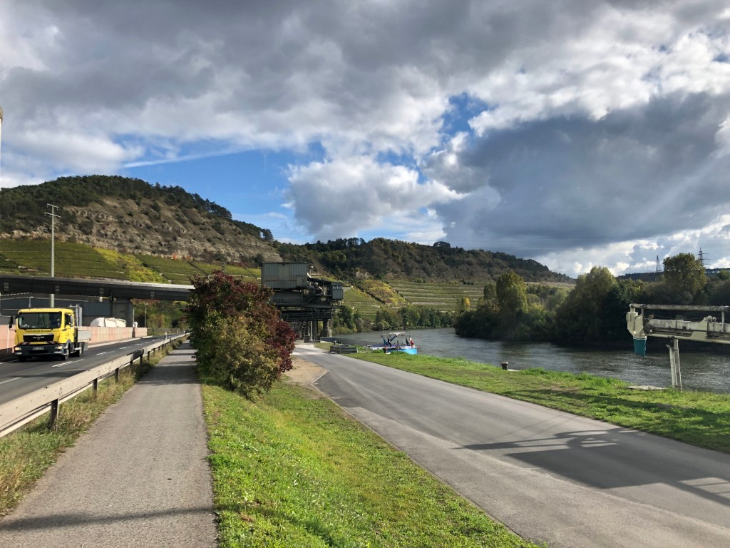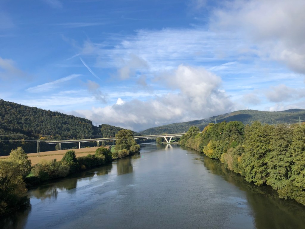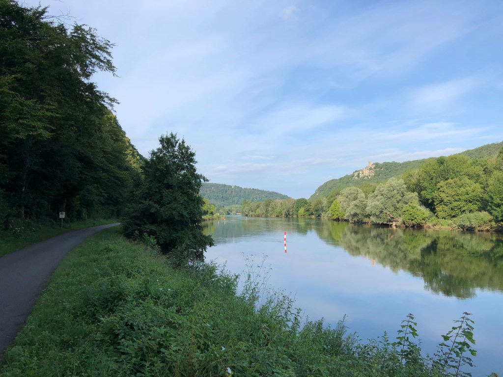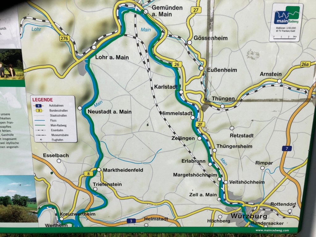 Die heutige Etappe ist sehr schön, der Fahrradweg führt – nicht wie hier – meist abseits der Strasse dem Main entlang.