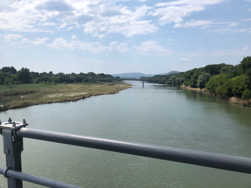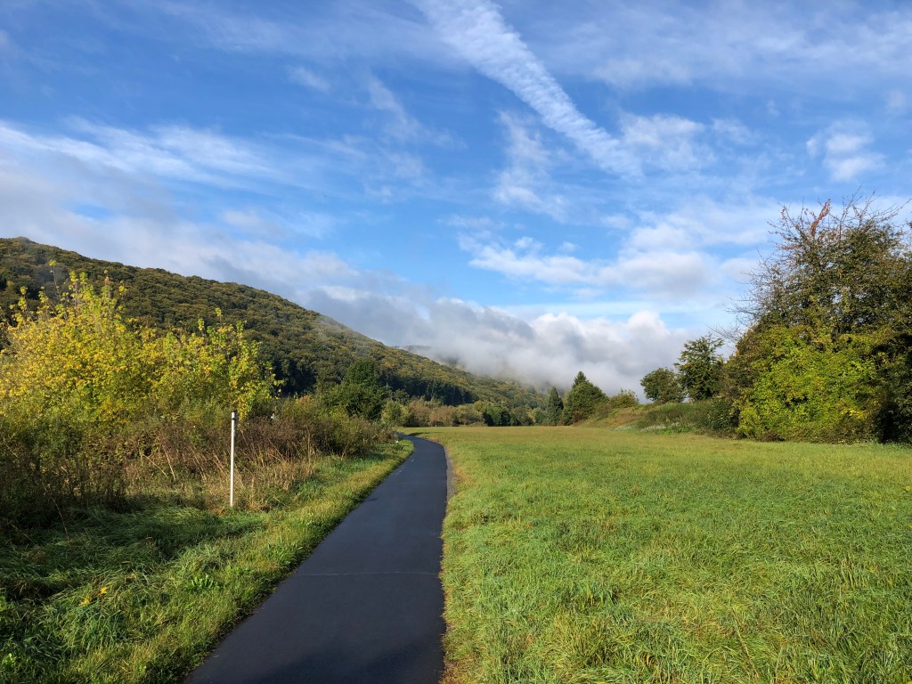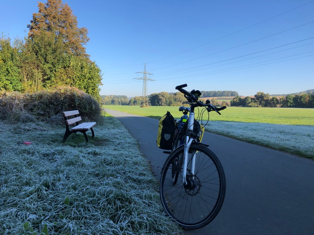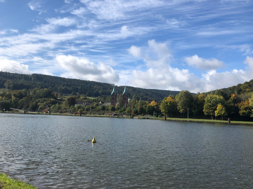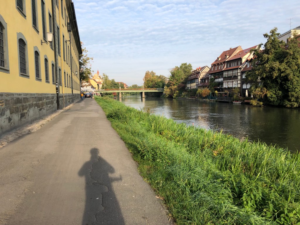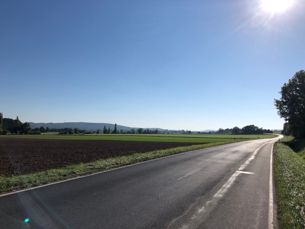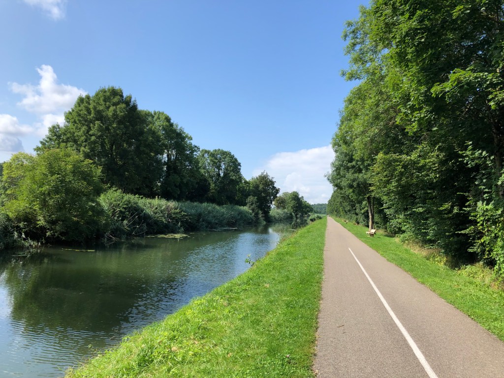 Die heutige Etappe ist sehr schön, der Fahrradweg führt – nicht wie hier – meist abseits der Strasse dem Main entlang.