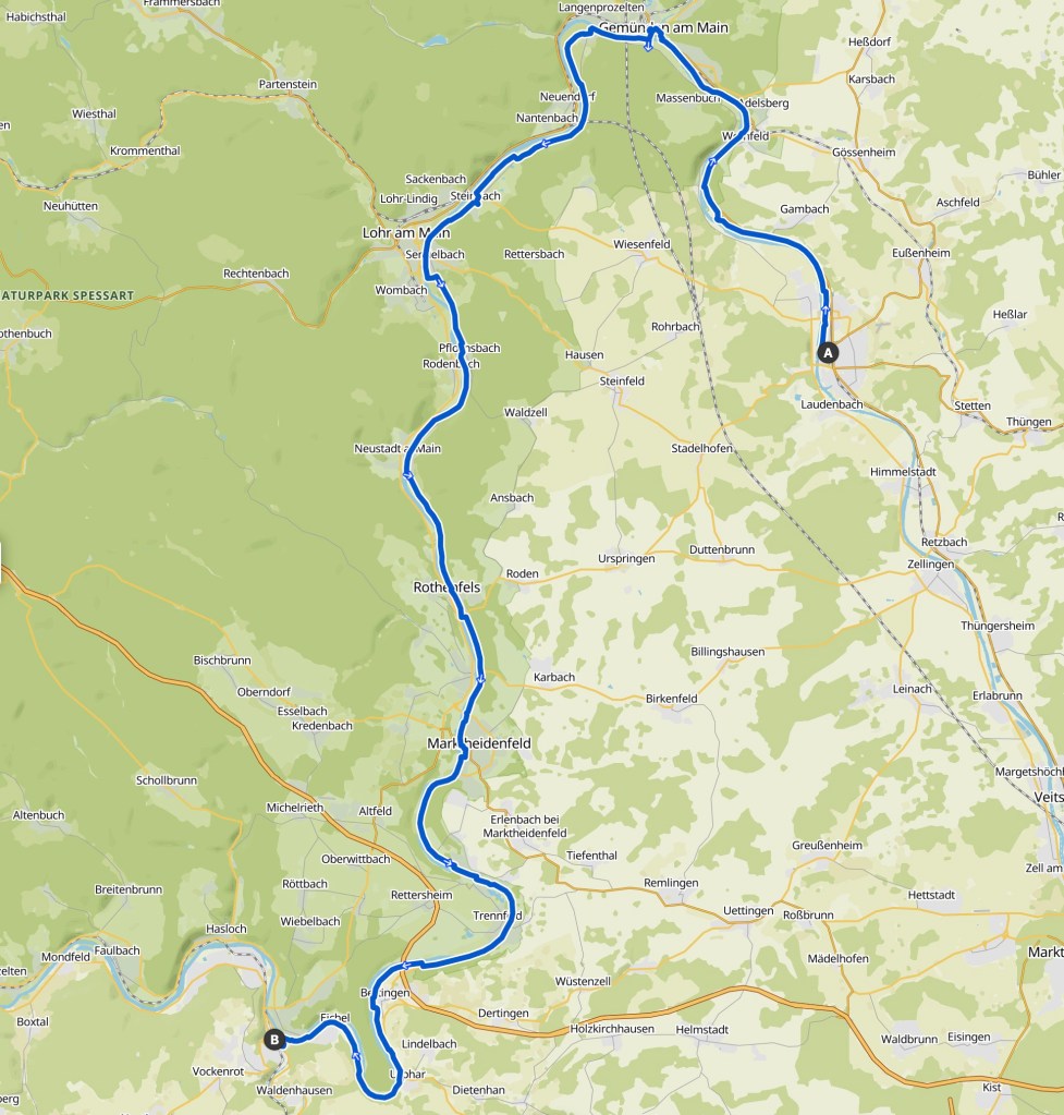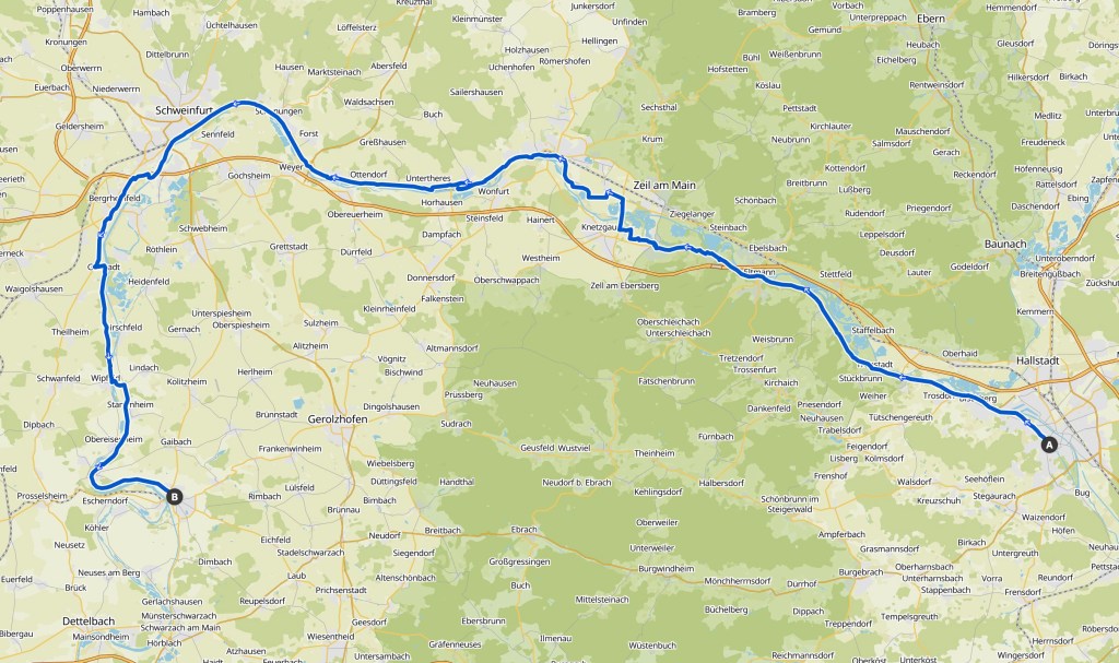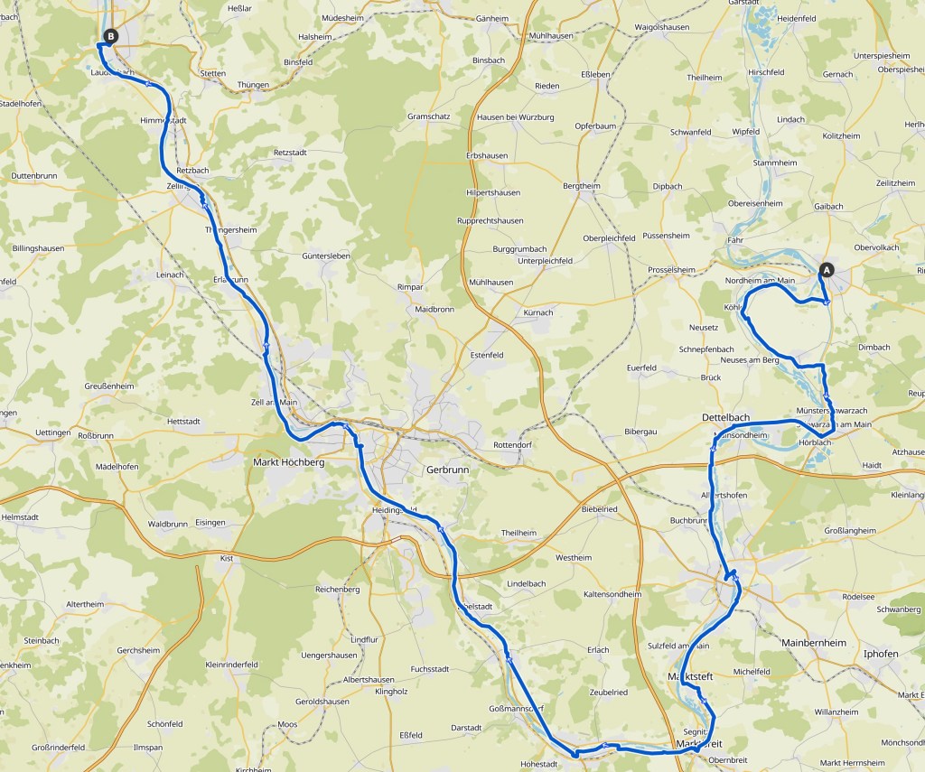 Nachdem ich heute fast den ganzen Tag gegen Süden gefahren bin, macht der Main bei Uphar eine Schlaufe und fliesst von nun an wieder mehrheitlich westwärts.