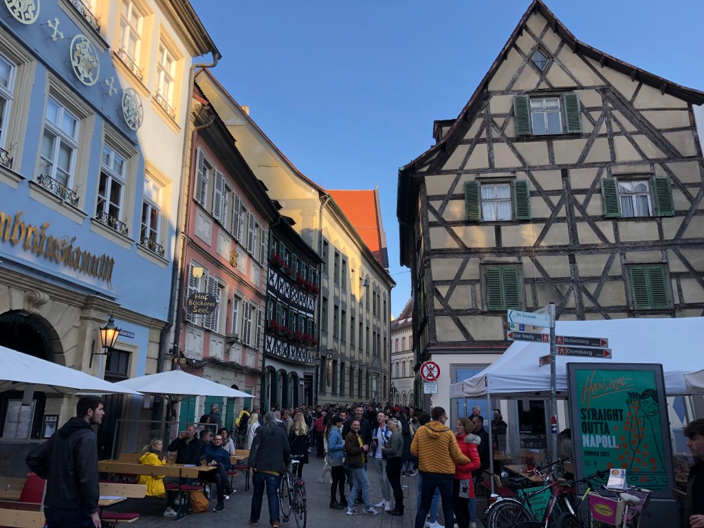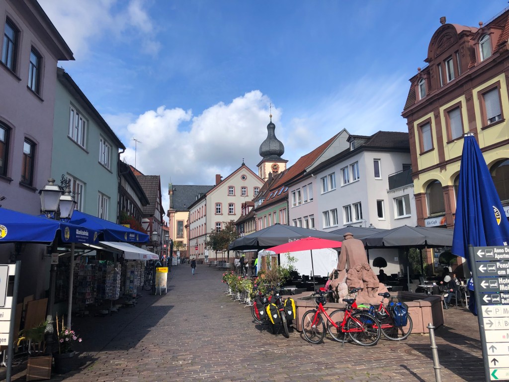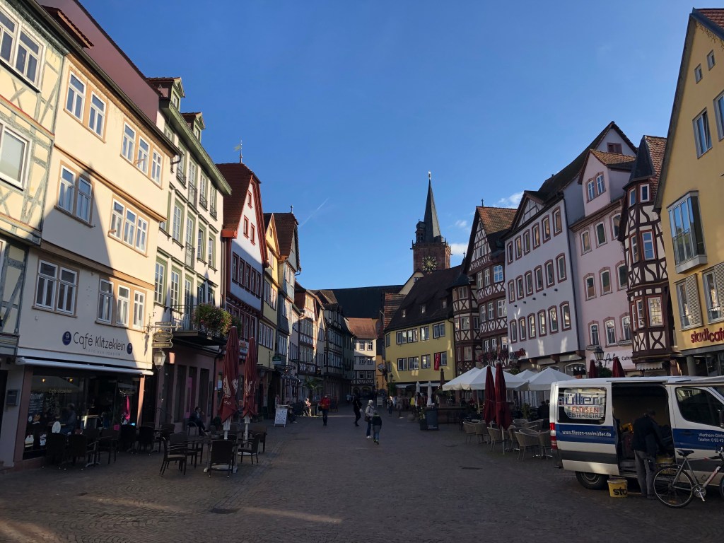 Als ich in meinem gebuchten Hotel einchecken will, erlebe ich eine Überraschung. Das Hotel ist geschlossen und präsentiert sich ausserdem in einem lamentablen Zustand. Das kann doch nicht wahr sein. Ich storniere das Hotel online und suche in der Altstadt nach einem Ersatzhotel; schliesslich lande ich wieder einem Hotel gleichen Namens (Hotel Löwensteiner Hof). Ich brauch ein bisschen Zeit, bis ich den Grund finde dieses kuriosen Missverständnisses: Es gibt/gab zwei Hotels mit dem Namen Löwensteiner Hof und die Adressdatei von Komoot hatte die Adresse dieses alten, geschlossenen Hotels gespeichert und mich dorthin gelotst.
