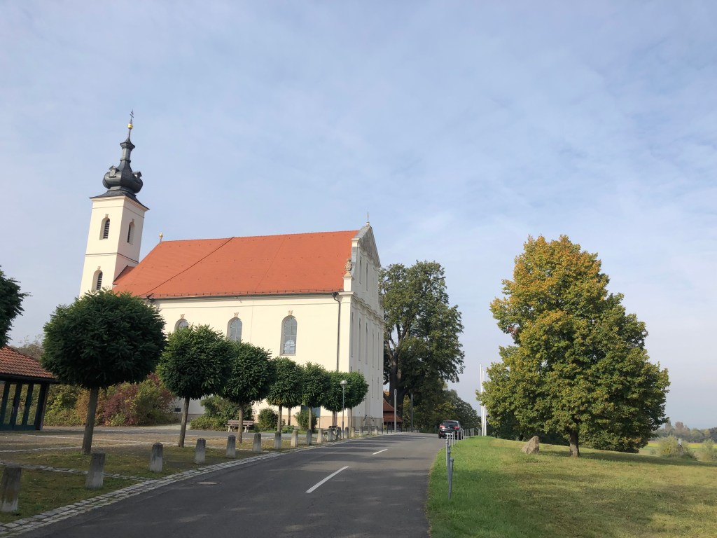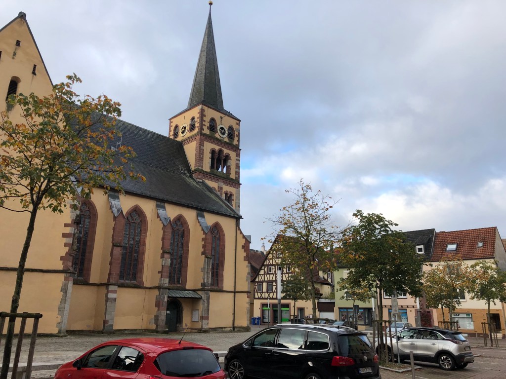 Heute breche ich um 09.00 Uhr auf. Da ich Karlstadt am Vortag nicht besichtigt habe, fahre ich zuerst durch dieses überschaubare Städtchen und mache eine Erinnerungsfoto von der historisch bedeutsamen Kirche.