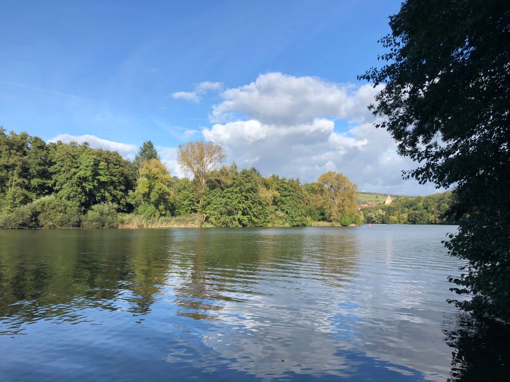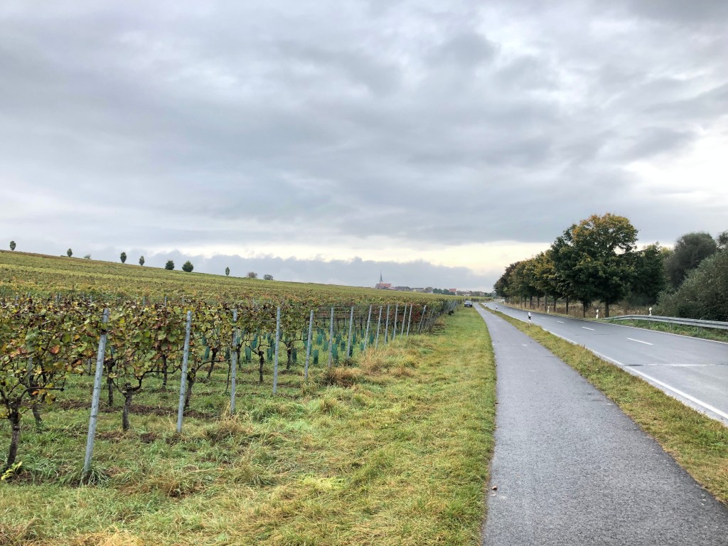 Kaum habe ich Karlstadt verlassen, beginnt es leicht zu regnen. Das müsste jetzt nicht sein, denn heute habe ich die Regenhose nicht schon beim Start angezogen. Glücklicherweise hört der Regen aber bald wieder auf und das Wetter wird immer besser.