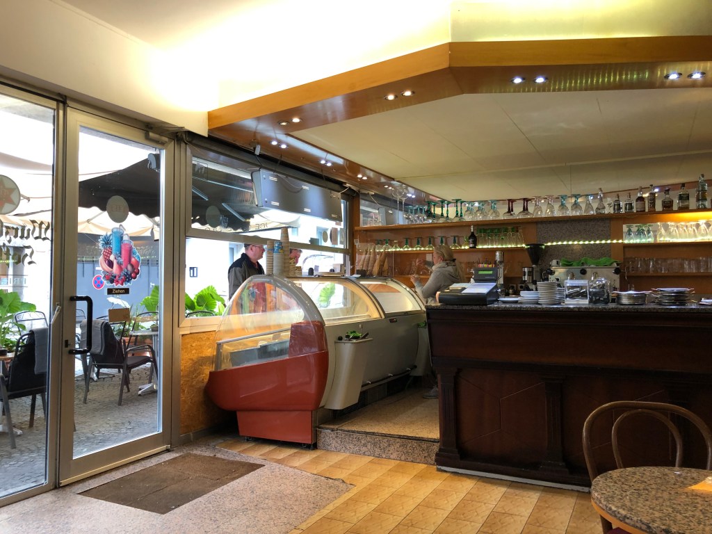 Auch andere Tourenfahrer haben diese Gelateria entdeckt. Zwei davon treffe ich später wieder im Hotel in Wertheim.