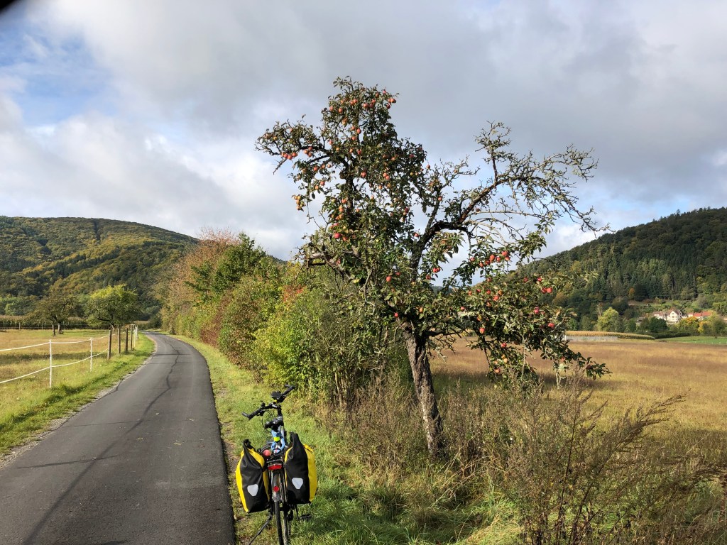 Nach Homburg, einem Weinort, entdecke ich wieder einmal einen Apfelbaum; das gibt doch ein wunderbares Bild: